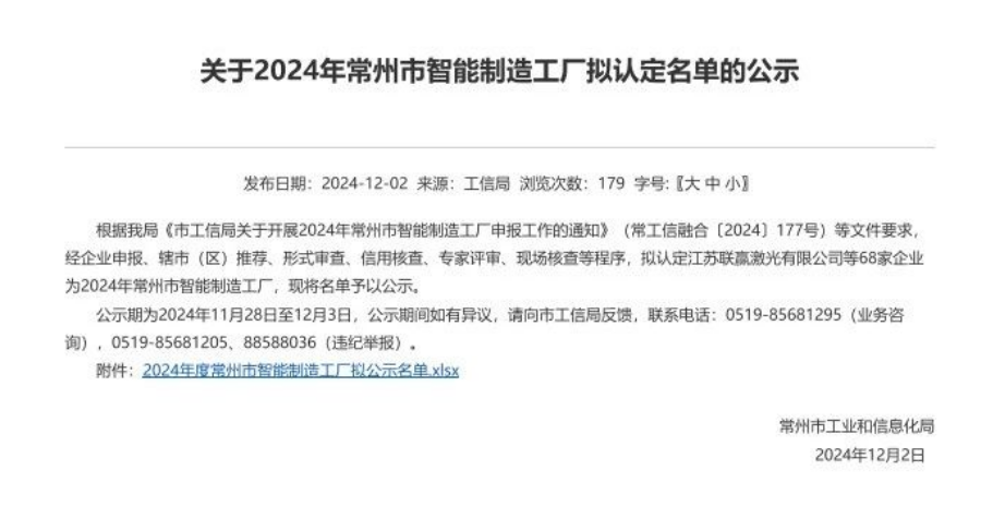 冬迎碩果,佳績連連!近日,常州市工業(yè)和信息化局發(fā)布2024常州市智能制造工廠擬認定名單,常州華威電子榮登榜單!